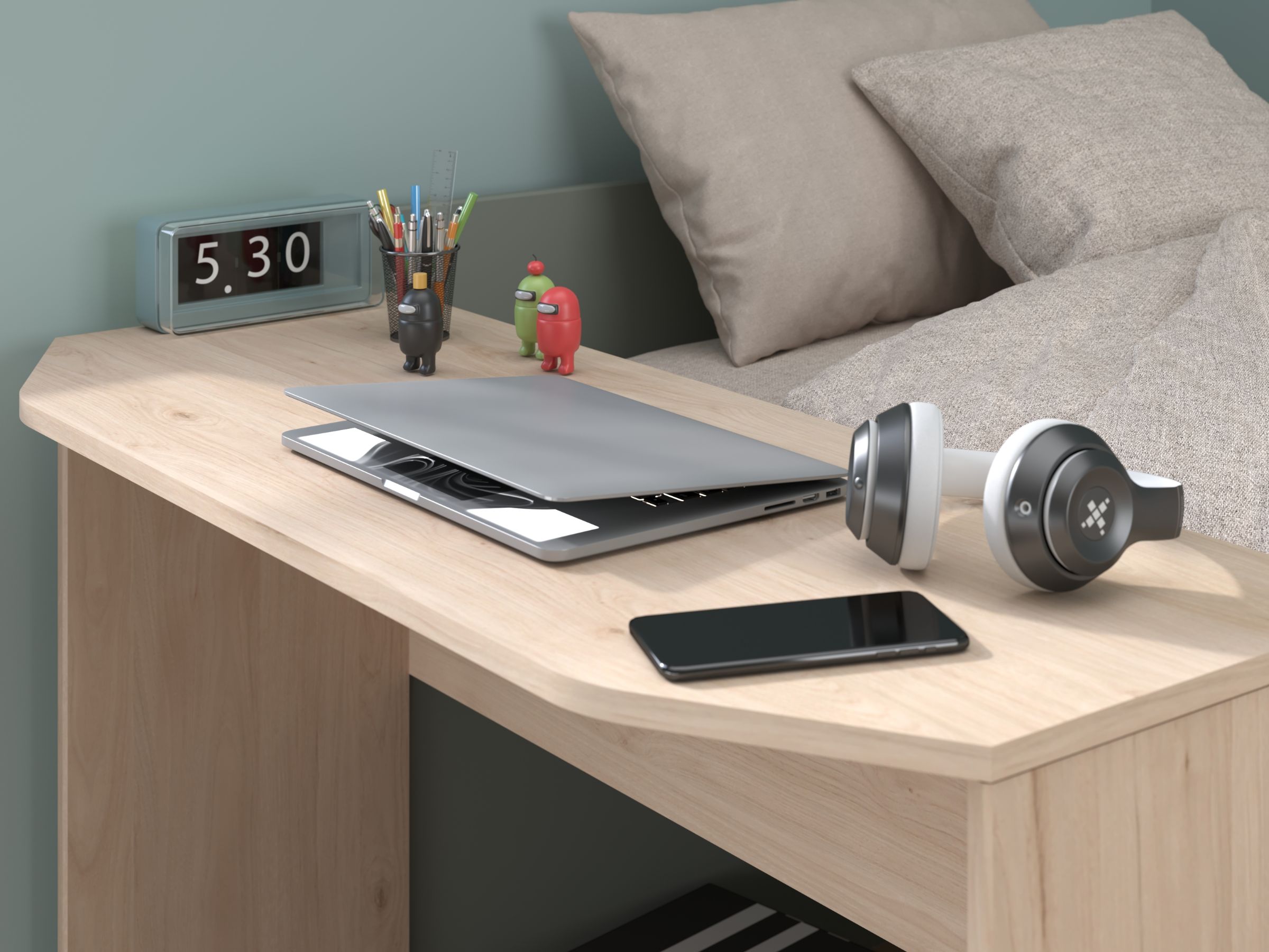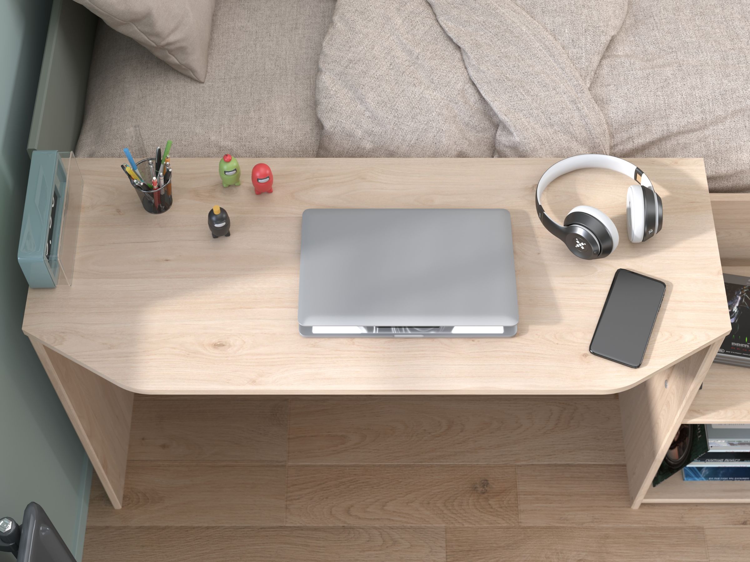 Sengen har et tidløst design i japansk eik med dus grønnfarge, som passer både gutter og jenter, og som smidig integreres i de fleste interiørstiler. Den smarte løsningen under sengen gir over 900 liter oppbevaringsplass, inkludert integrert skrivebord, skap og bokhylle – perfekt for bøker, leker, skoleutstyr og personlige eiendeler.