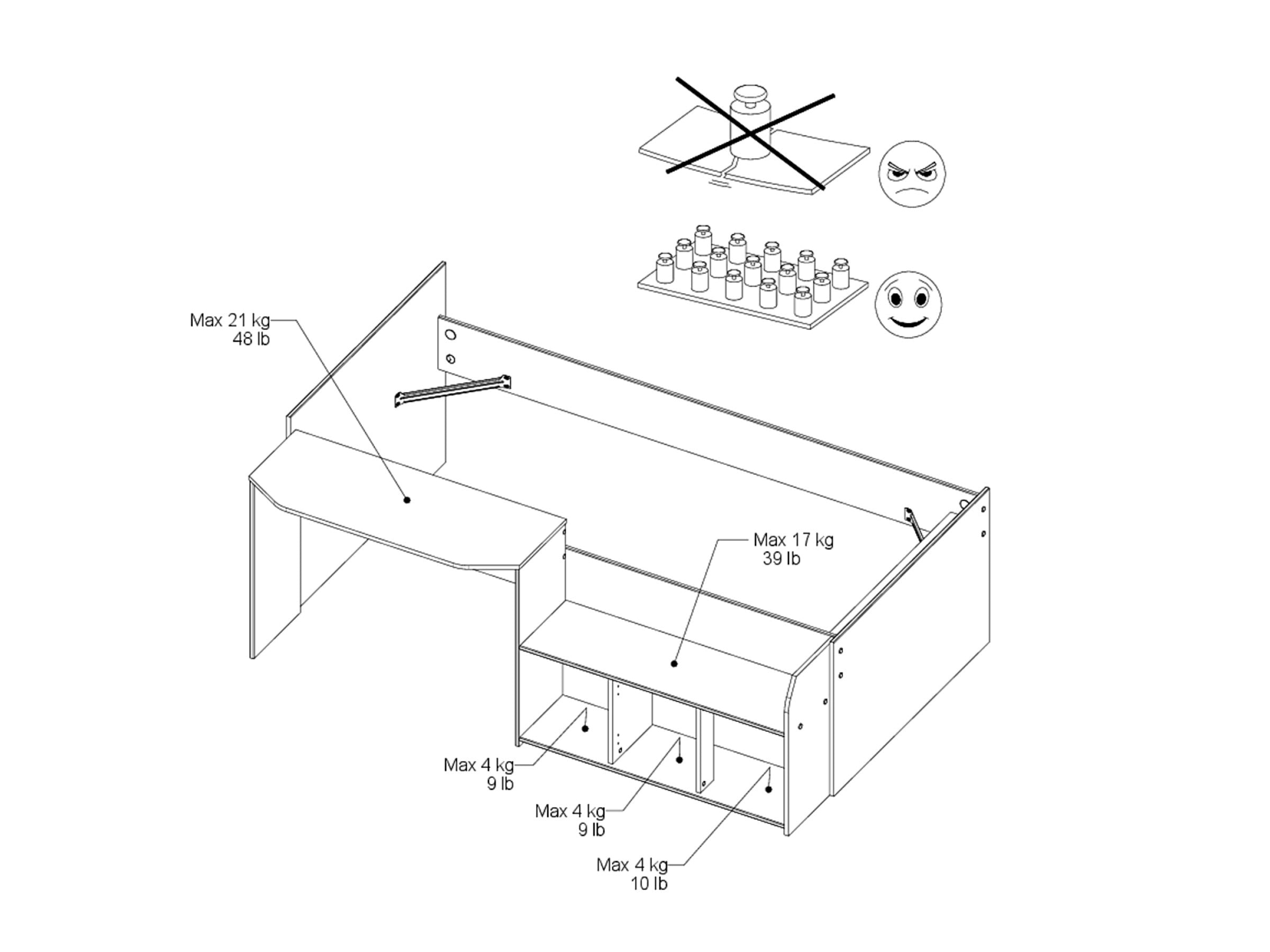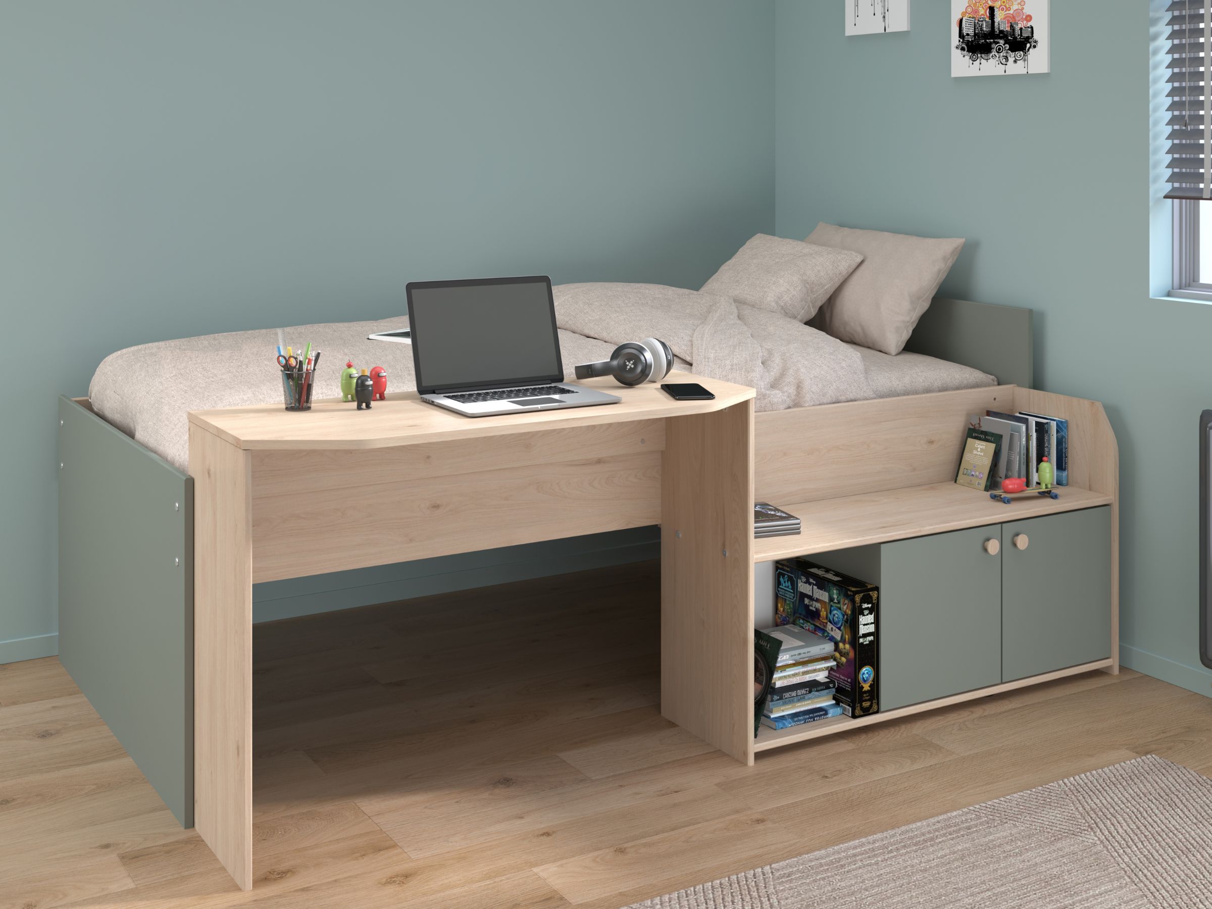 Halvhøy seng med skrivebord og oppbevaring 90x200 - JADE