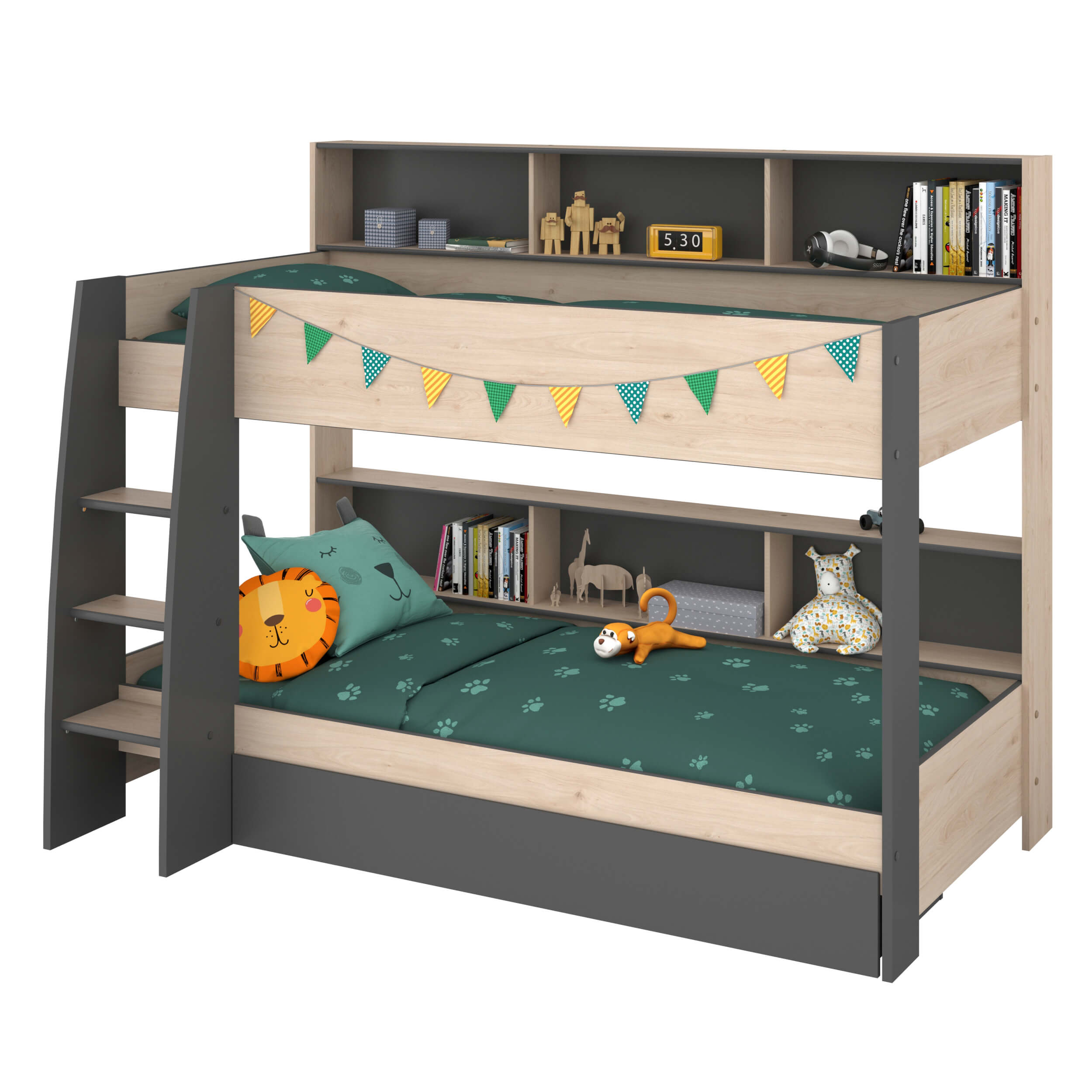 Lekker køyeseng i den trendy fargekombinasjonen eik/grå fra den franske produsenten Parisot.