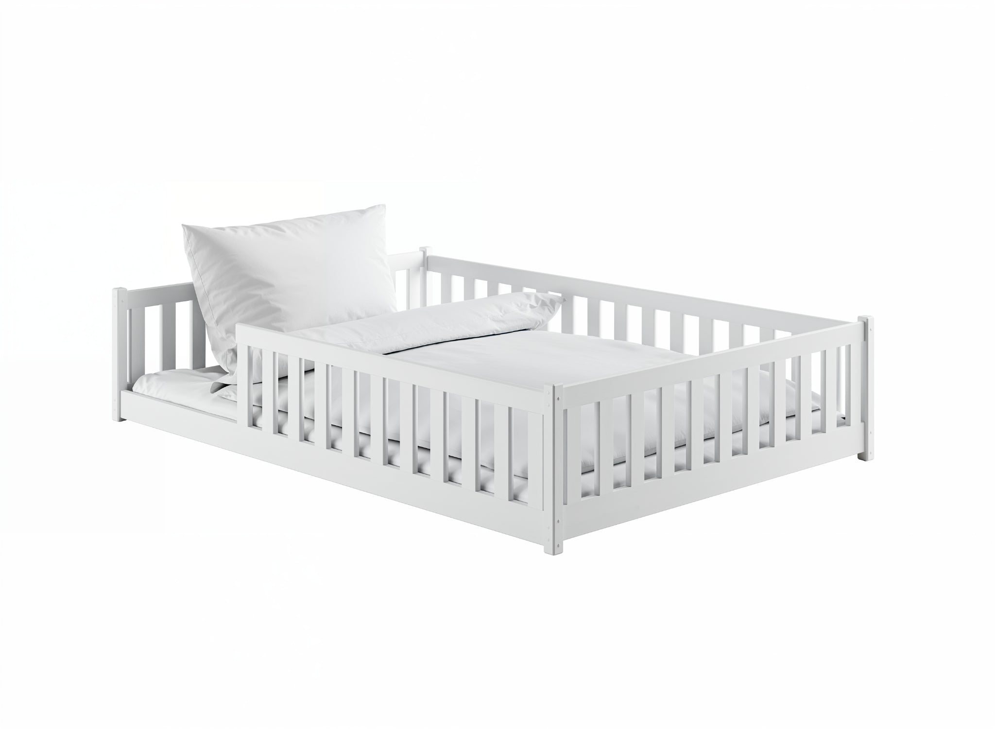 Montessori-seng 140x200 – trygg og stilren barneseng i hvitt