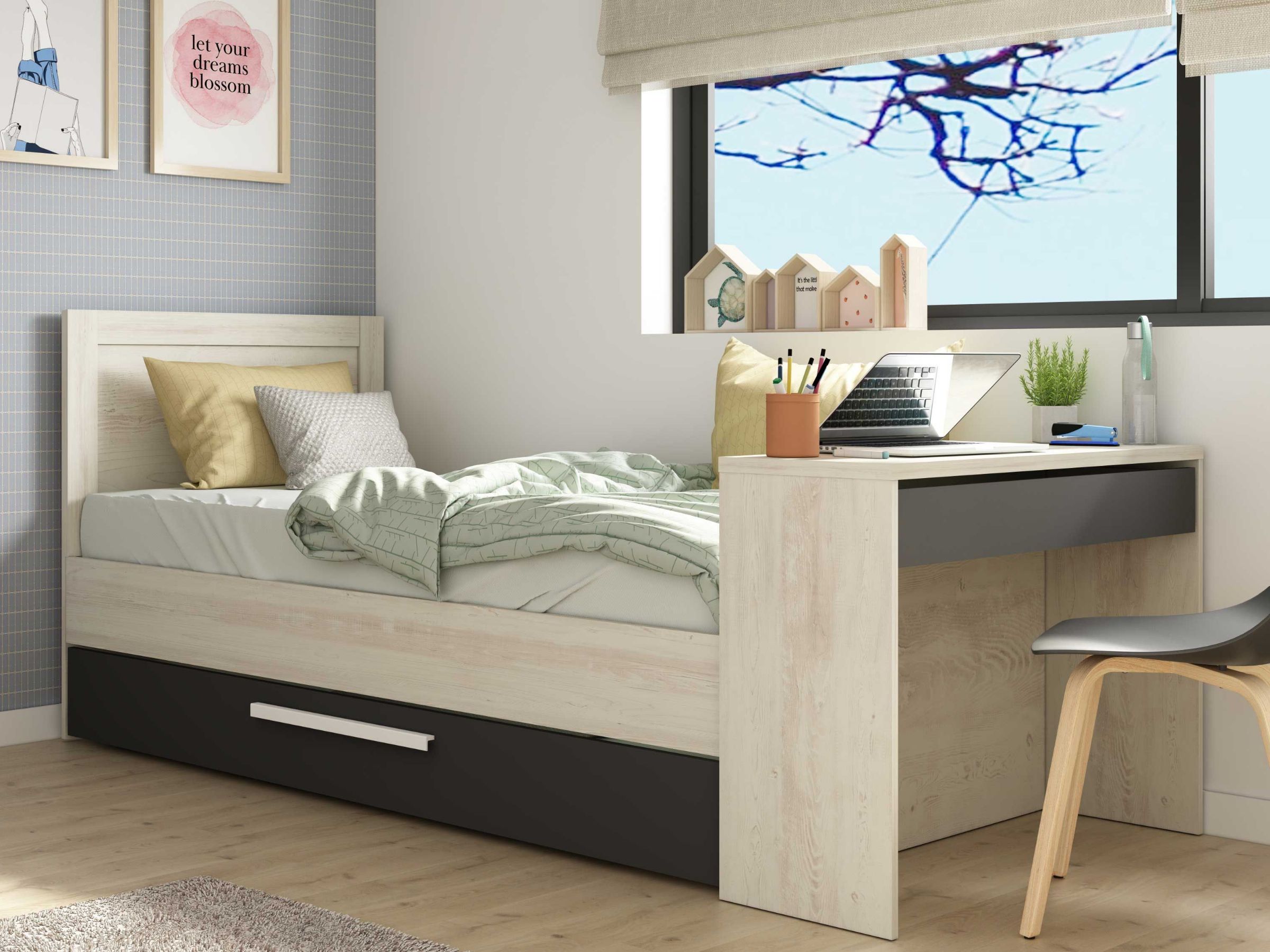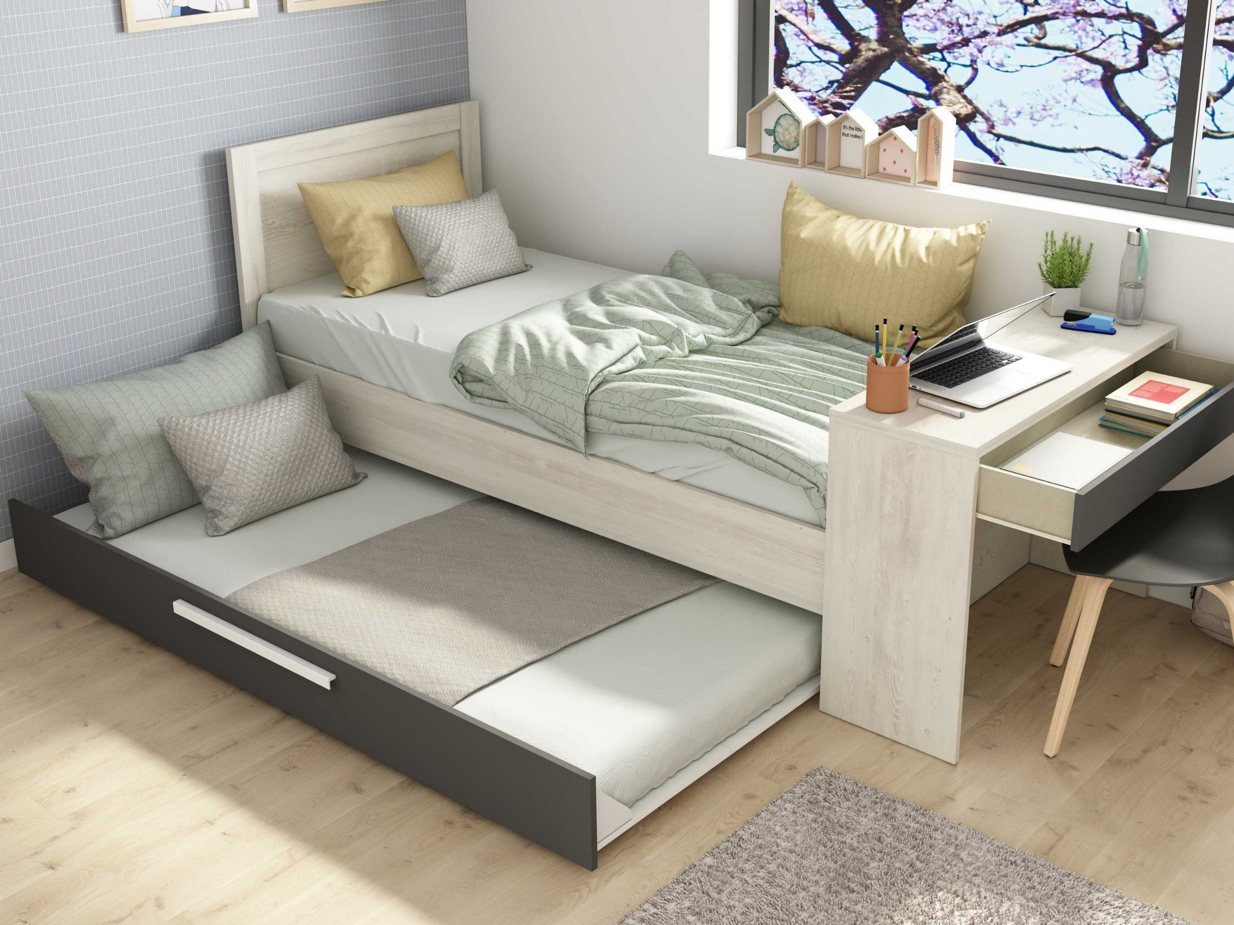Shipley er en moderne og praktisk barneseng som utnytter plassen på rommet på en smart måte. Den kombinerer en komfortabel seng med et integrert skrivebord og en uttrekkbar ekstraseng, og gir dermed en fleksibel løsning for ett eller to barn. Perfekt for mindre rom eller tenåringsrom hvor funksjonalitet og stil er viktig.